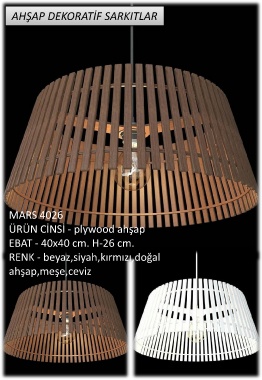 AHŞAP DEKORATİF SARKITLAR MARS 4026 ÜRÜN CİNSİ - plywood ahşap EBAT - 40x40 cm. H-26 cm. RENK - beyaz,siyah,kırmızı,doğal ahşap,meşe,ceviz
