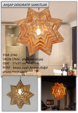 AHŞAP DEKORATİF SARKITLAR STAR 3740 ÜRÜN CİNSİ - plywood ahşap EBAT - 37x37 cm. H-40 cm. RENK - beyaz,siyah,kırmızı,doğal ahşap,meşe,ceviz