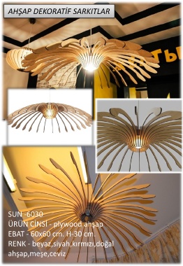 AHŞAP DEKORATİF SARKITLAR SUN -6030 ÜRÜN CİNSİ - plywood ahşap EBAT - 60x60 cm. H-30 cm. RENK - beyaz,siyah,kırmızı,doğal ahşap,meşe,ceviz