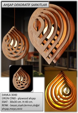 AHŞAP DEKORATİF SARKITLAR DAMLA 3040 ÜRÜN CİNSİ - plywood ahşap EBAT - 30x30 cm. H-40 cm. RENK - beyaz,siyah,kırmızı,doğal ahşap,meşe,ceviz