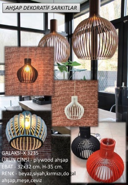 AHŞAP DEKORATİF SARKITLAR GALAKSİ-X 3235 ÜRÜN CİNSİ - plywood ahşap EBAT - 32x32 cm. H-35 cm. RENK - beyaz,siyah,kırmızı,doğal ahşap,meşe,ceviz